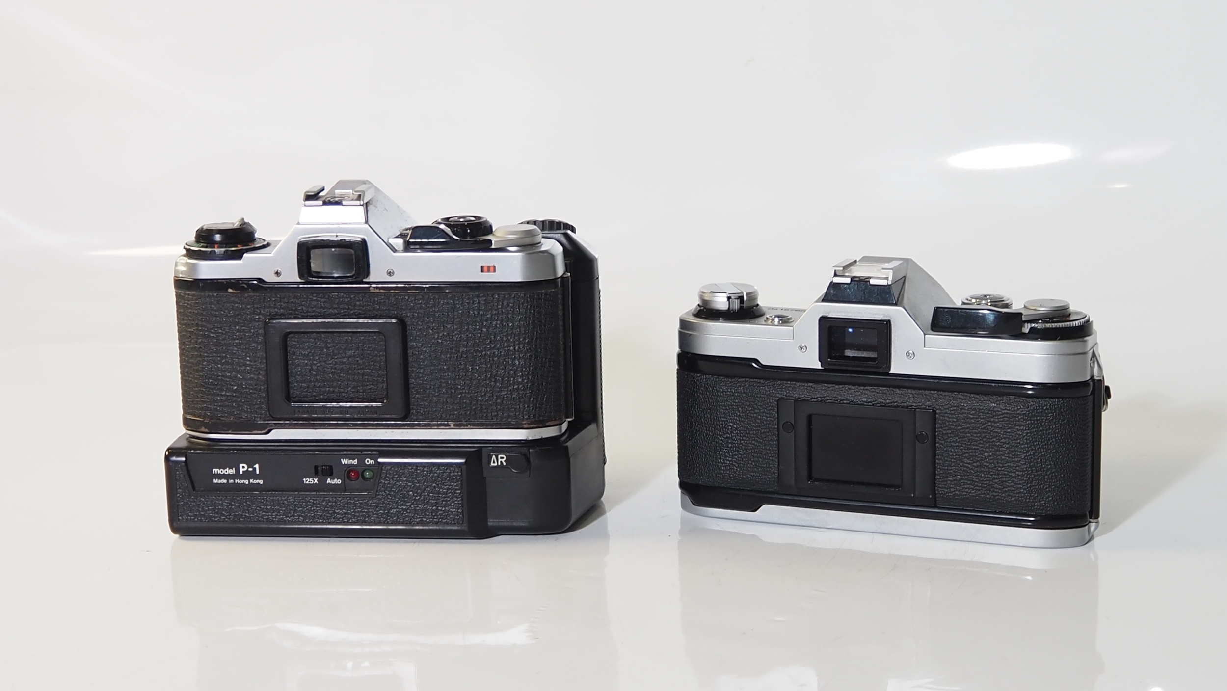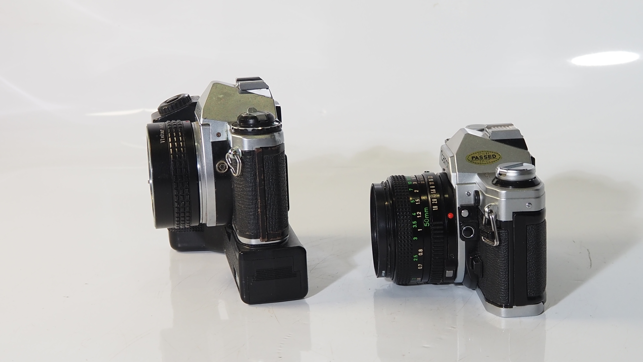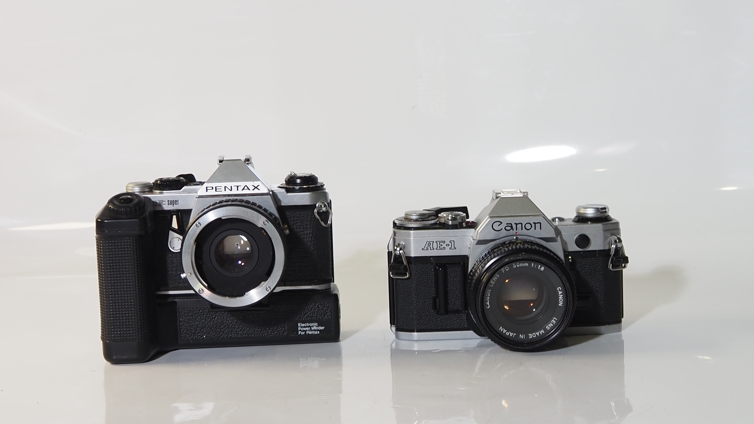 A Canon ae-1 Olympus me supper cameras