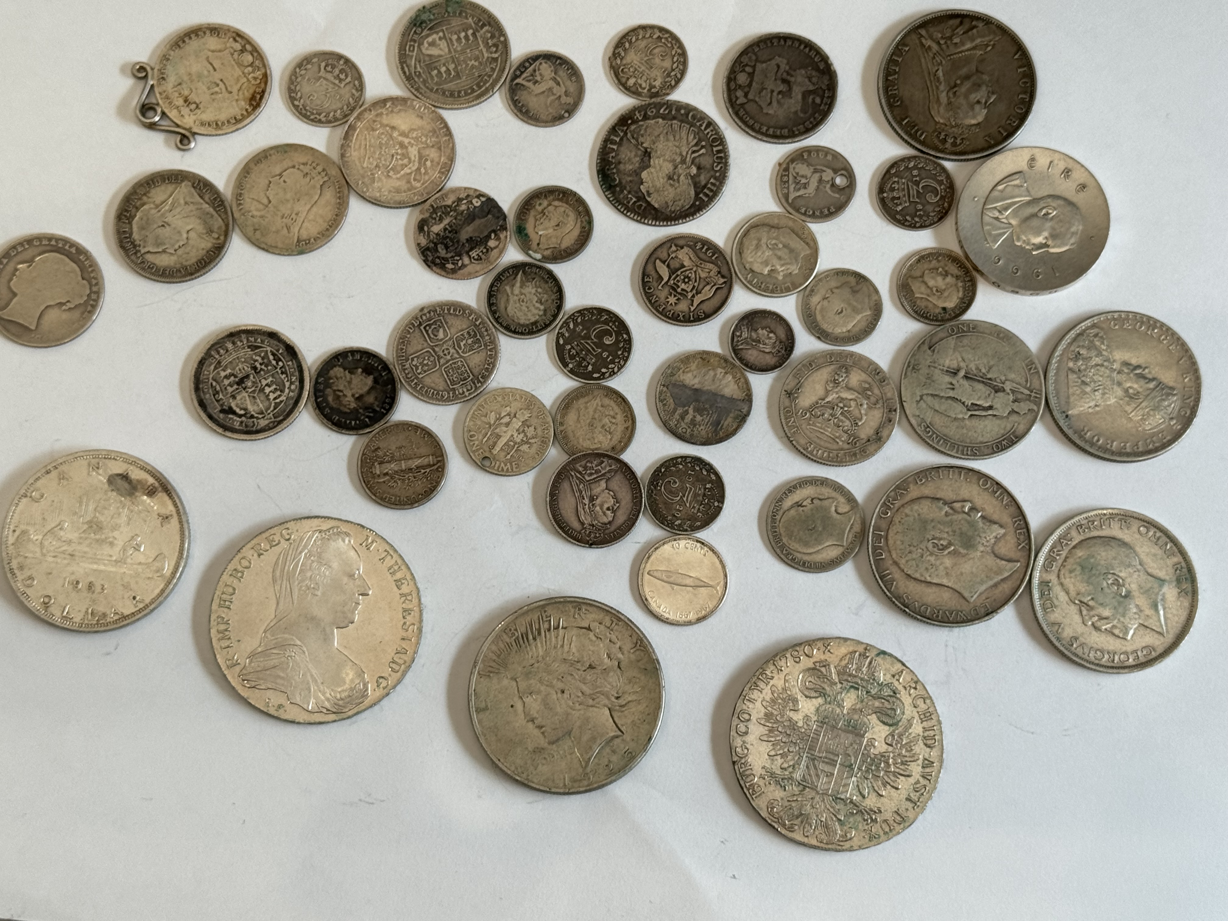 A 290.95g silver coins up to 1920 including 1780 2 x Austria Silver Maria Theresa Thaler Coin