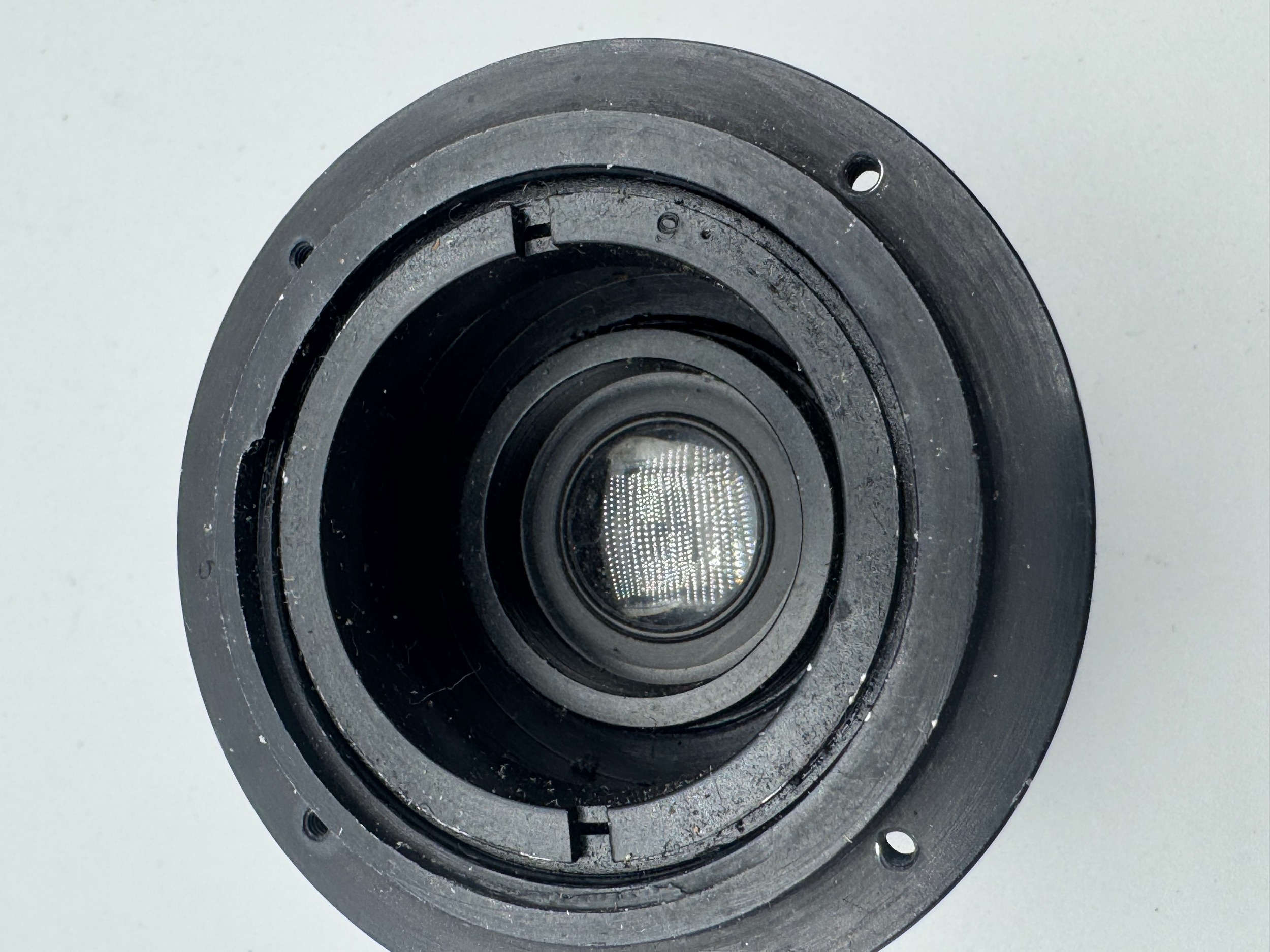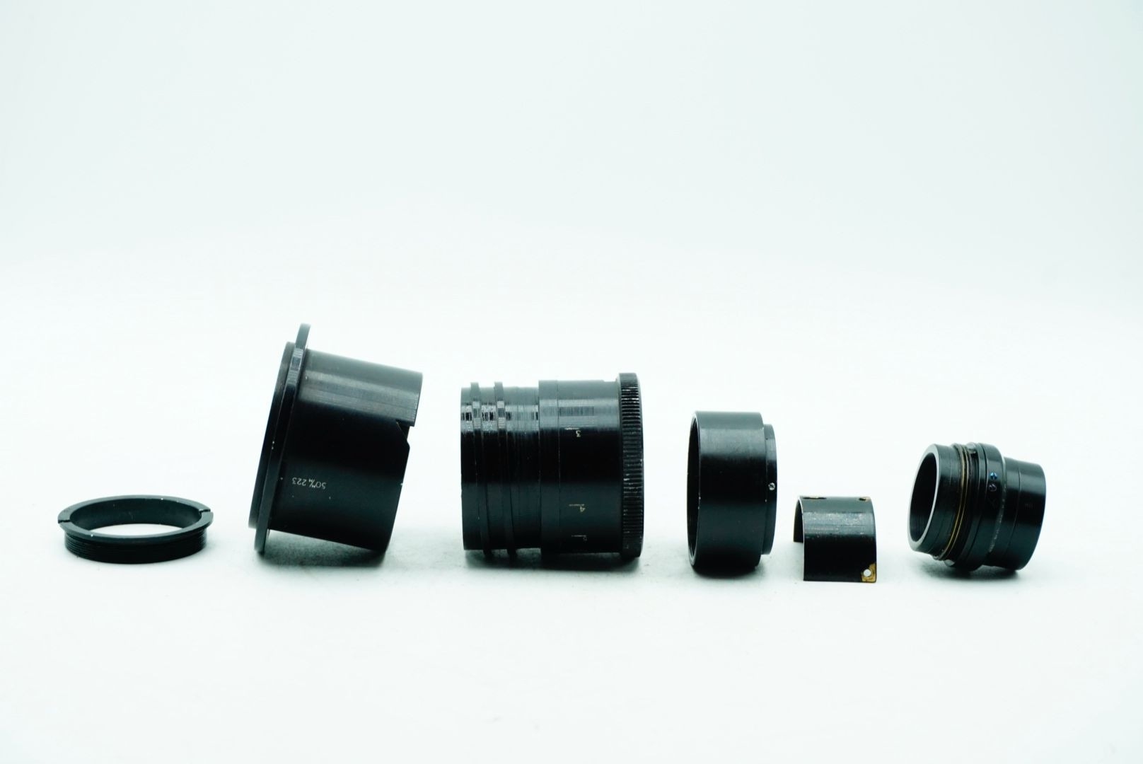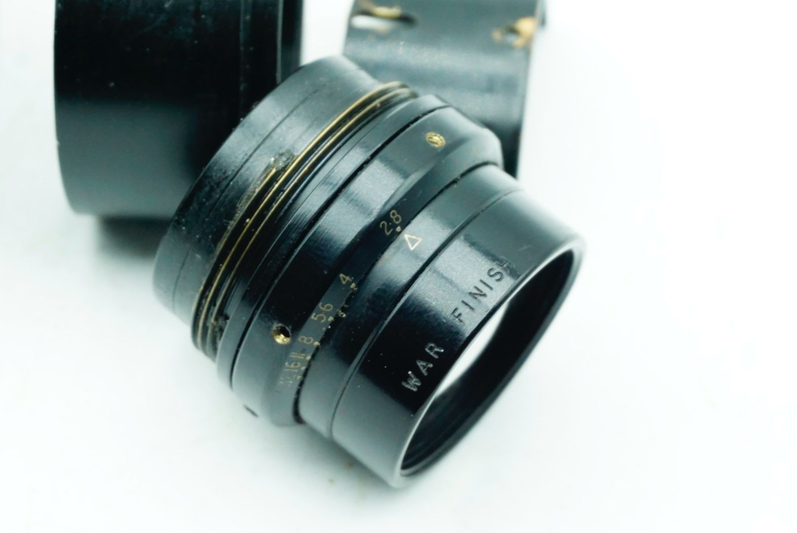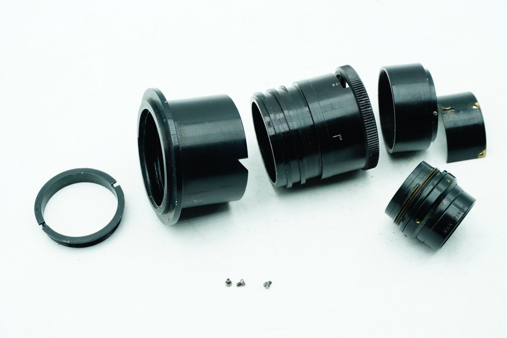 A Taylor Hobson Cooke Panfo f/2.8 50mm “War Finish” lens s/n 282235 a classic motion-picture optic produced by Taylor, Taylor & Hobson (Cooke) of England. The Panfo war finish series was designed to deliver consistent sharpness, controlled contrast, and reliable performance for professional film production, and today these lenses are valued for both their historical importance and distinctive vintage rendering. ; black, serial No 282235, body, VG, front elementlight haze . rear element clear/aperture smooth minimal dust